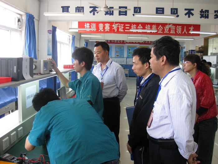 5月16日,由我院电气工程学院承办的2011年全国职业院校技能竞赛“芯片级检测维修与信息服务”赛项陕西赛区选拔赛,在行知楼电子工艺实训室举行。来自省内三个学院的6支参赛队共12名选手,从计算机强制开机、主板排故、绘制电路图、检测信号参数等环节展开激烈角逐。经过两个小时紧张竞赛,西安铁路职业技术学院参赛一队获得第一名,二队获第二名,我院电气工程学院参赛一队获第三名。这三支参赛队将代表陕西省参加6月份在天津举行的全国职业院校本赛项的竞赛。