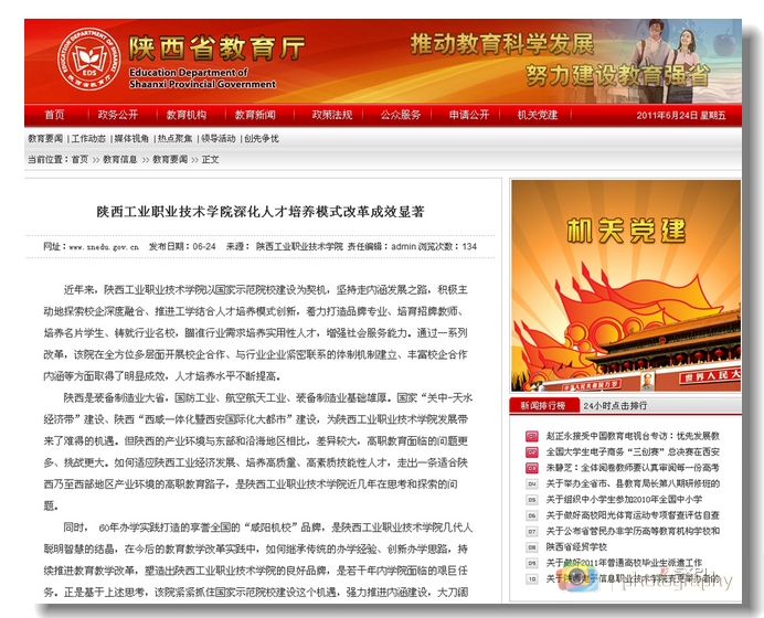陕西省教育厅网站6月24日在教育开云手机官方版在线入口中头条报道我院人才培养模式改革,现将《开云手机官方版在线入口深化人才培养模式改革成效显著》全文转载如下:
