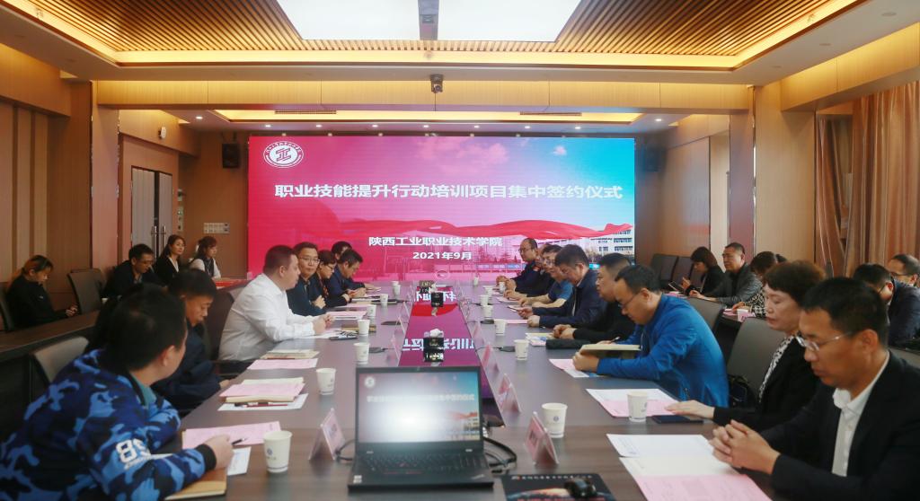 9月28日,咸阳隆基乐叶光伏科技有限公司、陕西天士力医药物流有限公司、陕西咸阳杜克普服装有限公司、西诺医疗器械集团有限公司、陕西省崔家沟监狱、咸阳市消防救援支队、陕西帛宇纺织有限公司和深圳市企鹅网络科技有限公司等8家企事业单位齐聚我校,参加陕西工院技能提升行动培训项目集中签约仪式,共同助推咸阳市职业技能提升行动快速发展。