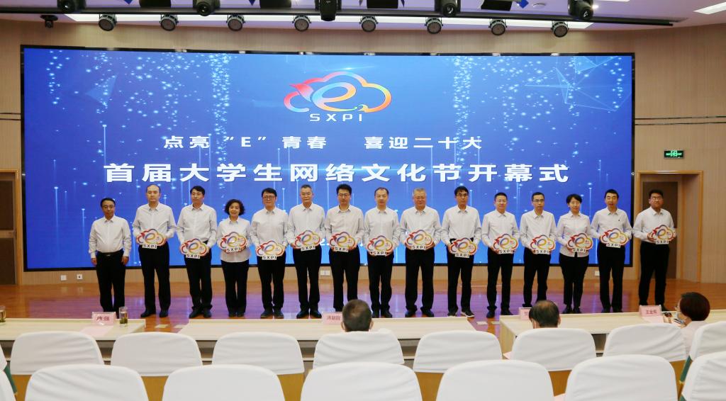 党委书记惠朝阳与各项目负责人共同点亮首届大学生网络文化节