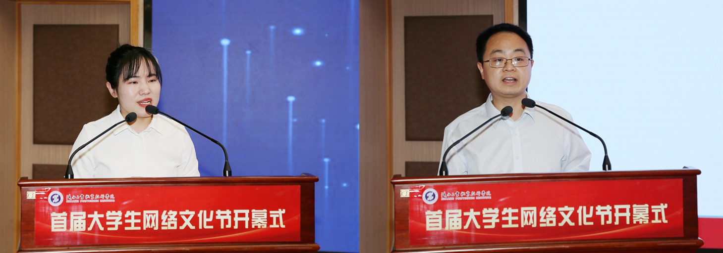 此外,开幕式上,信息工程学院教师曹珊作为项目指导教师代表,表达了她对本届网络文化节的期待以及工作设想;汽车工程学院教师李友治分享了他如何用新媒体开展思想政治工作的历程、感悟和思考。与会人员共同观看了我校优秀网络文化作品——原创MV《青春匠心》。