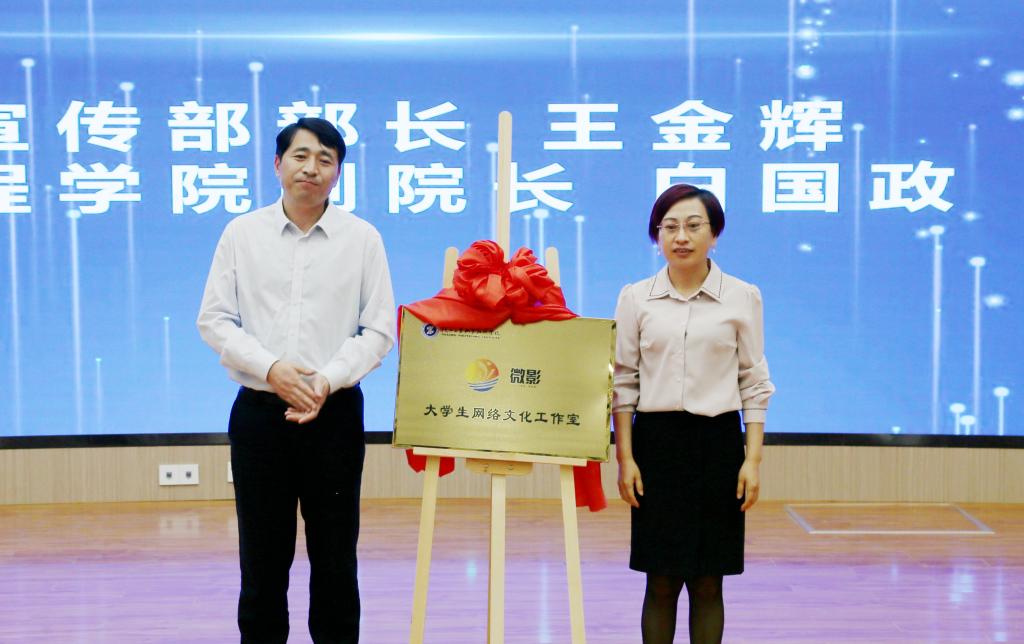 党委宣传部部长王金辉、信息学院副院长白国政为网络文化工作室揭牌