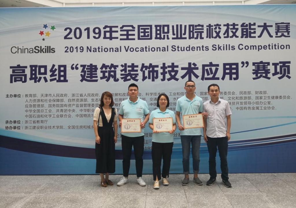 6月1日至2日,2019年全国职业院校技能大赛高职组“建筑装饰技术应用”赛项在杭州落下帷幕,本次竞赛共有全国79所院校的代表队参赛。我院由教师张超、郭靖指导,工程造价1702班李悦、工程造价1703班王星、工程造价1706班雷博同学组成的代表队,经过激烈角逐,获得团体二等奖。