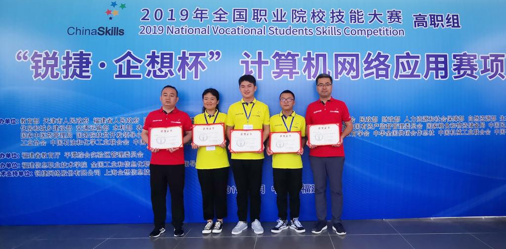 6月15日,2019年全国职业院校技能大赛高职组“计算机网络应用”赛项在福建信息职业技术学院圆满结束,大赛共有来自全国各省、市的113支代表队,共339名选手参加。经过四小时的激烈比拼,由我院信息工程学院教师李爱国、李文宇指导的网络1702班杨烁、网络1801班君康和信管1804班段若琳3名同学组成的代表队以总成绩第二名荣获团体一等奖。