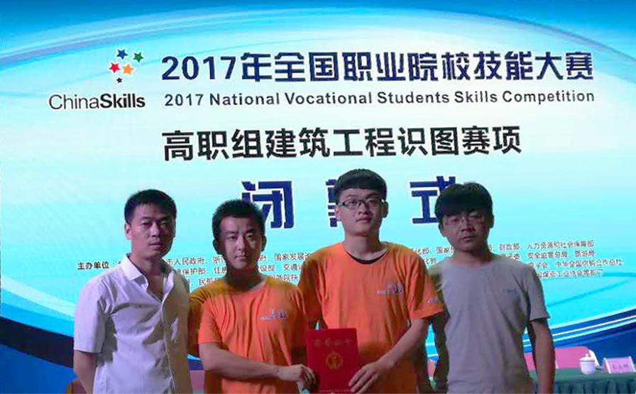 建筑工程识图技能赛项,重点考察土建类学生识读建筑工程图的能力、图纸会审能力及运用软件绘制建筑专业、结构专业施工图的操作技能。经过为期三天的激烈比拼,由土木工程学院肖青站、赵航老师指导的工程技术1503班王宏、工程管理1502班杨昊两位同学组成的参赛队脱颖而出,荣获团体二等奖。