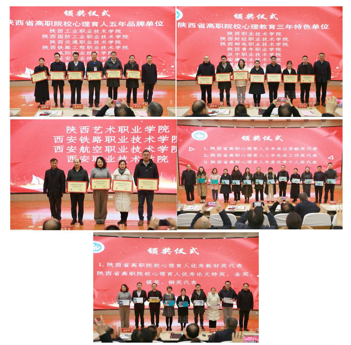 与会领导为全省第一届高职心理专委会(2018-2023)先进单位、先进个人、优秀成果代表颁奖