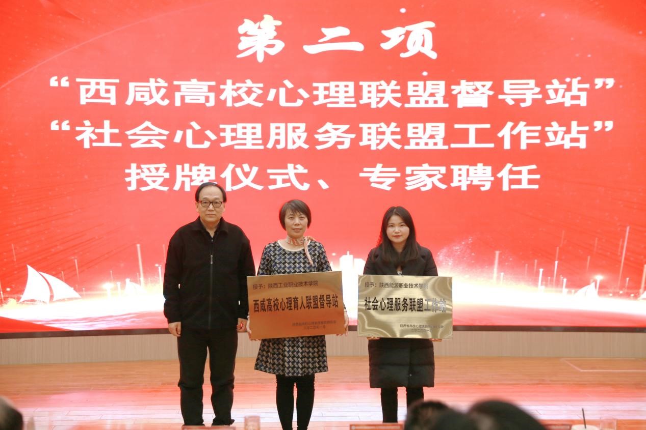 会议第二阶段为2024年陕西省高职院校心理育人工作论坛,由陕西省高校心理素质教育研究会副会长、我校学工部(处)长郝军主持。我校党委书记惠朝阳在大会上致欢迎词,倡议学工战线的老师们在学生择学、择业、择偶的关键时期,为国家培养出身心健康、积极向上、技能报国、爱党爱国的优秀人才。郑林科会长为我校和陕西能源职业技术学院分别授予“西咸高校心理育人联盟”、“社会心理服务工作联盟”铭牌,并为育德育心专家委员会特聘专家颁发证书;随后,为第一届专委会(2018-2023)先进单位、先进个人、优秀成果代表颁奖。