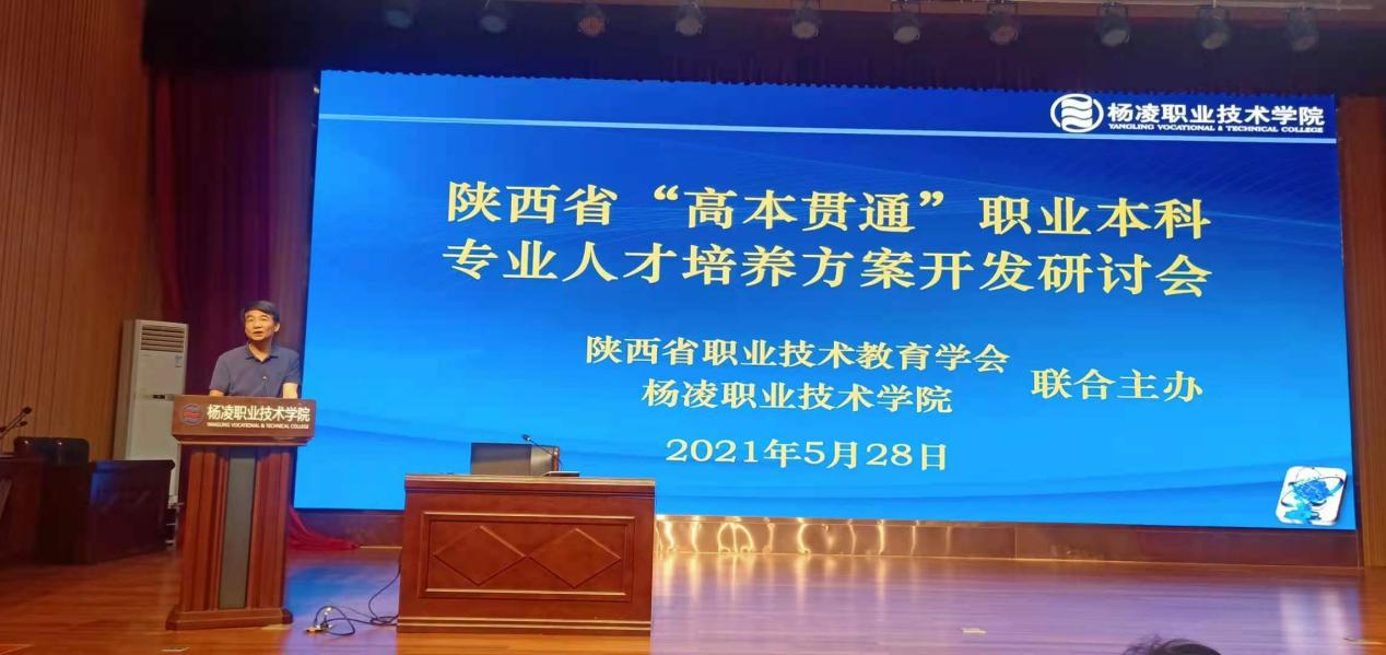 5月28日上午,由陕西省职业技术教育学会和杨凌职业技术学院联合主办的陕西省“高本贯通”职业本科专业人才培养方案开发研讨会在杨凌召开。国家督学、陕西省职业技术教育学会会长崔岩教授,副会长王晓江教授、秘书长杨建民教授、8所国家级“双高计划”建设院校主管领导、教务处长、相关二级学院负责人、专业带头人、骨干教师等90余人参加了研讨会。本次会议由陕西省职业技术教育学会副会长王晓江教授主持。