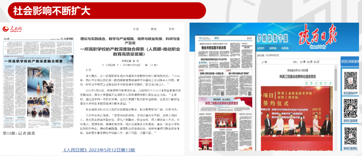 学校重点围绕知识产权、职称聘任、设备采购、信息化服务等出台了16项管理办法和3项实施细则;围绕装备制造、新材料、新能源等省内主导产业,建成陕西省“四主体一联合”智能微网与PEM制氢储能装备校企研究中心、高性能航空材料与器件陕西省高校工程研究中心、复合型移动机器人陕西省高校工程研究中心、富硒农产品废弃物资源化利用陕西省高校工程研究中心等23个工程研究中心、重点实验室、院士工作站、智库等科创平台,建成航空航天用高温材料与器件陕西高校青年创新团队、新能源及自动化装备研发陕西高校青年创新团队等18个科技创新团队,获厅局级以上科研成果奖21项,立项厅局级科研项目102项(其中国基金3项),授权专利、软著等1398件;推进三级技术经理人队伍建设,108件知识产权实施成果转化,学校在机床磨床、柔性玻璃等关键技术领域牵头起草国家、行业、团体等技术标准6项,累计服务区域内中小微企业146家,为企业创造经济效益3.86亿元,改革经验被《中国教育报》《陕西日报》等媒体报道,走出了一条产教融合、科教融汇的新路子。