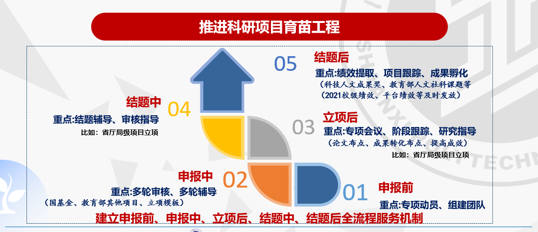 心技术攻关。持续做好科研项目的立项、结题和过程管理;提供项目全过程指导服务,组织专家打磨、指导,突出项目育苗作用,在校级年度科研项目中增设科技创新、成果转化培育、服务地方、乡村振兴等以服务地方政府、企业需求为导向的科研专项项目,推广实施项目揭榜挂帅。针对不同的项目类别,建立突出贡献、质量的评价指标体系,包含产生经济效益、成果转移转化、为行业、政府提供智库咨询等多维度、差异化的评价标准,科研项目研究质量、实效显著提高,改革后获批省级项目26项,厅局级项目58项。