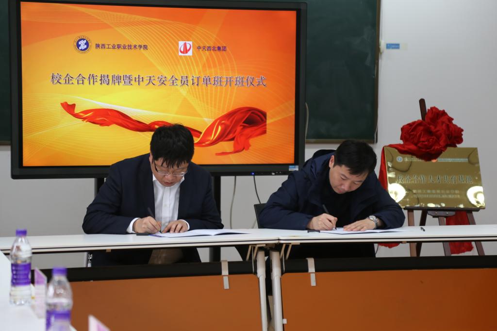 田昊副书记首先代表学院向出席仪式的中天西北集团副总裁黄舍荣一行表示热烈欢迎,在介绍了学院办学历史、办学特色与办学理念以及“双高”建设所面临的重大机遇与发展后,他就发挥校企双方资源互补优势、提升校企深度融合、协同育人和共同发展等方面对订单班提出了希望和要求。接下来,中天西北集团副总裁黄舍荣代表公司对我院长期的支持表示感谢,并对公司概况、校企合作、订单班学生的培养谈了具体的设想,他表示,希望通过双方的共同努力,优势互补、工学结合,为学生提供更好的学习、实践平台,为行业的发展培养出更多、更好的优秀人才,共同把校企合作推向新的高度。企方班主任晏先勇介绍了“中天安全员订单班”培养计划,参会成员共同观看了中天控股集团企业形象片。随后,双方领导为“校企合作人才共育基地”揭牌并签订合作协议,并为学员发放录取通知书。