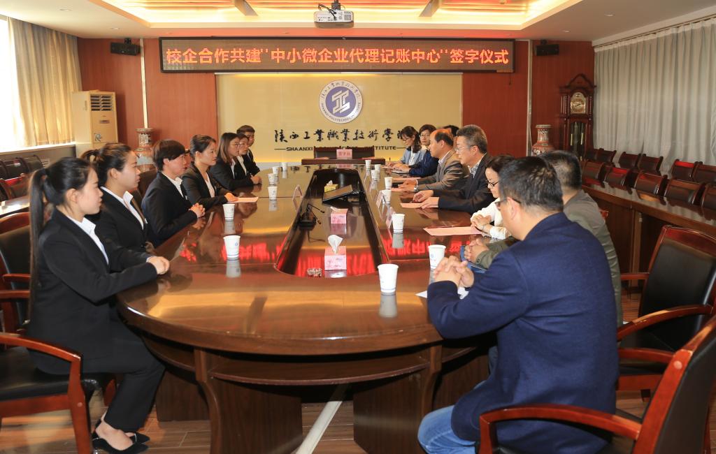 近日,我院与陕西纳映月尚勤企业管理有限公司签署合作共建“中小微企业代理记账中心”协议。共建协议由梅创社副院长同纳映月尚勤管理有限公司王艺丽总经理签订,工商管理学院领导班子成员及教师代表参加签约仪式。