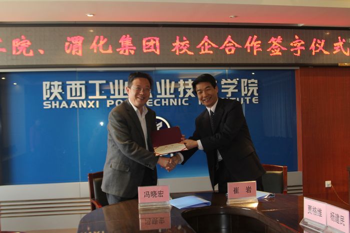 3月27日下午,我院与陕西渭河煤化工集团有限责任公司(简称渭化集团)校企合作签字仪式在崇文九楼会议室举行,渭化集团副总经理冯晓宏,我院领导崔岩、王晓江,化工与纺织学院、教务处、校企合作处等负责同志出席了签字仪式。签字仪式由王晓江副院长主持。根据协议,我院将在渭化集团设立“实习基地”,作为应用化工技术专业学生的实训、就业场所;渭化集团每年在我院招聘优秀毕业生在对口岗位进行顶岗实习并择优录用;同时,渭化集团也将在我院设立“陕西渭河煤化工集团有限责任公司产学研基地”。