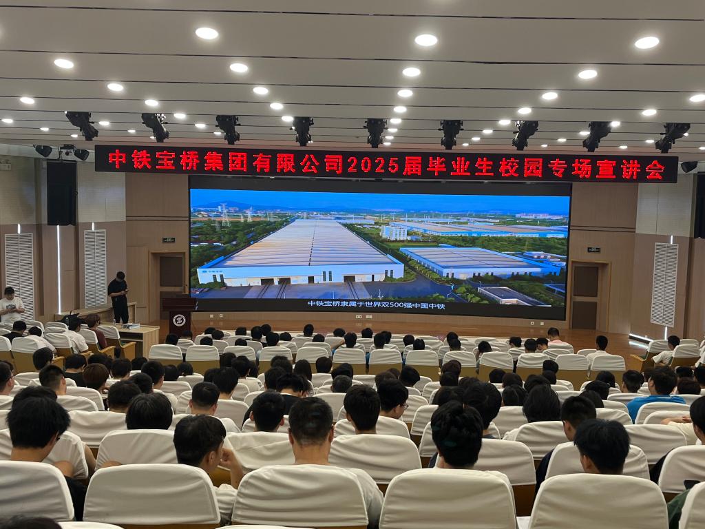 6月20日上午,由就业指导处举办的中铁宝桥集团有限公司2025届毕业生校园专场招聘会在学术会堂举行。本次招聘吸引了近400余名毕业生参加,200余名学生投递了简历。