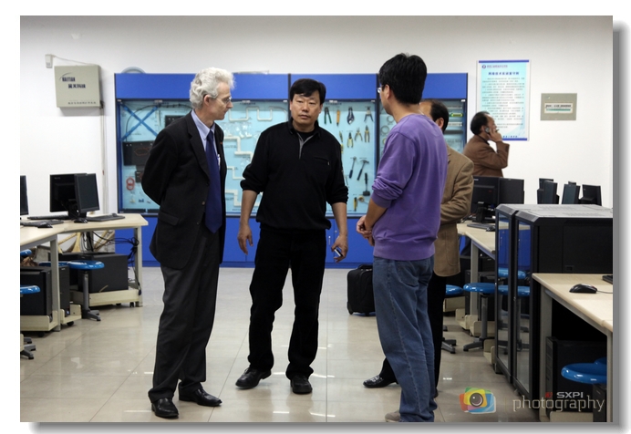 4月11日下午,德国职业教育专家、巴符州教师继续教育学院高级培训师托马斯·胡格,巴符州教师继续教育学院驻北京办事处主任朱稼先生一行来我院访问。在副院长王晓江、人事处处长梅创社和相关院系负责人的陪同下,胡格先生一行实地考察了数控工程学院、电气工程学院、信息工程学院实训基地,深入了解了我院实训条件建设及教学改革情况,并对我院的办学规模和发展前景赞誉有加。