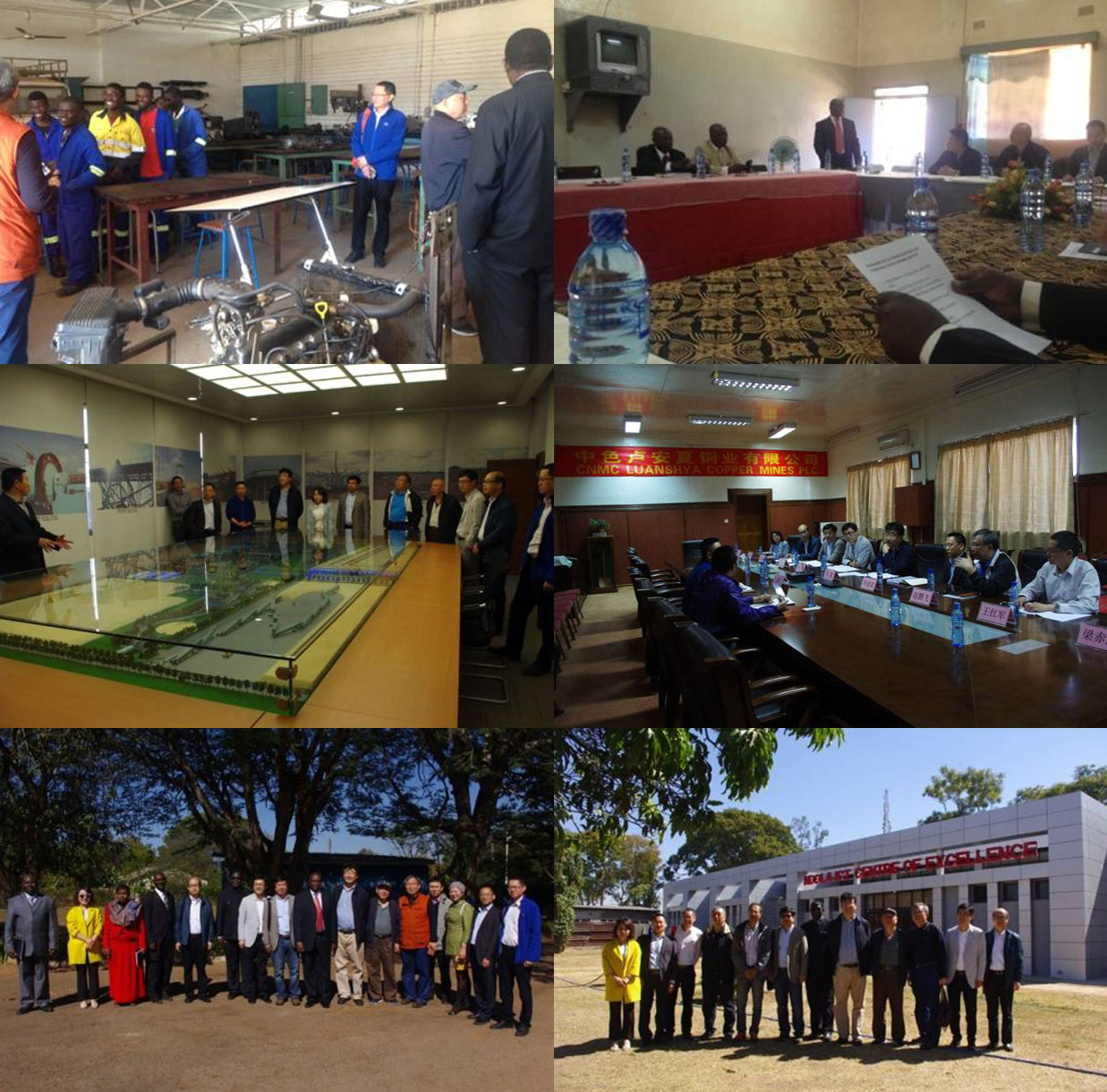 调研组主要调研了中色卢安夏铜业有限公司、赞比亚中国经济贸易合作区、中色非洲矿业(谦比希矿)公司、火法冶炼厂(CCS)、湿法生产厂、中色矿业卢萨卡园区等6家企业,参观了中色卢安夏铜业有限公司露天矿、尾矿、湿法生产厂,参观了中赞友谊医院,火法冶炼厂、谦比希矿、湿法生产厂、经济贸易合作区、吉海农食用茵工厂、赞比西洒业有限公司等企业,调研和参观了相关的6所技能与培训学校,并与我国驻赞使馆陈代办、孔子学院李院长、商务部代表及新华社驻赞开云(中国)媒体代表进行了座谈。