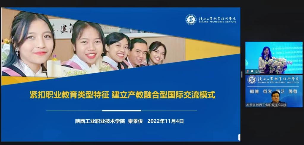 他在发言中指出,近年来,陕西工院紧扣国家重大战略,坚持校企协同“走出去”的国际化发展理念,探索产教融合国(境)外技术技能人才培养,形成了校企“双融”、“双优”、“双创”为主要特色的“三双”国际交流发展模式,为企业精准培养了一批急需的本土高素质人才,有效支撑了企业的海外发展,促进了民心相通、民心相亲。同时,他就疫情下职业教育国际交流模式,产教携手为国(境)外开发专业课程标准分享了自己的体会与思考。