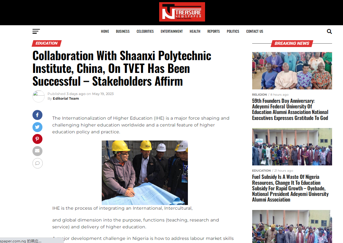 尼日利亚多家媒体报道我校助力该国发展职业教育