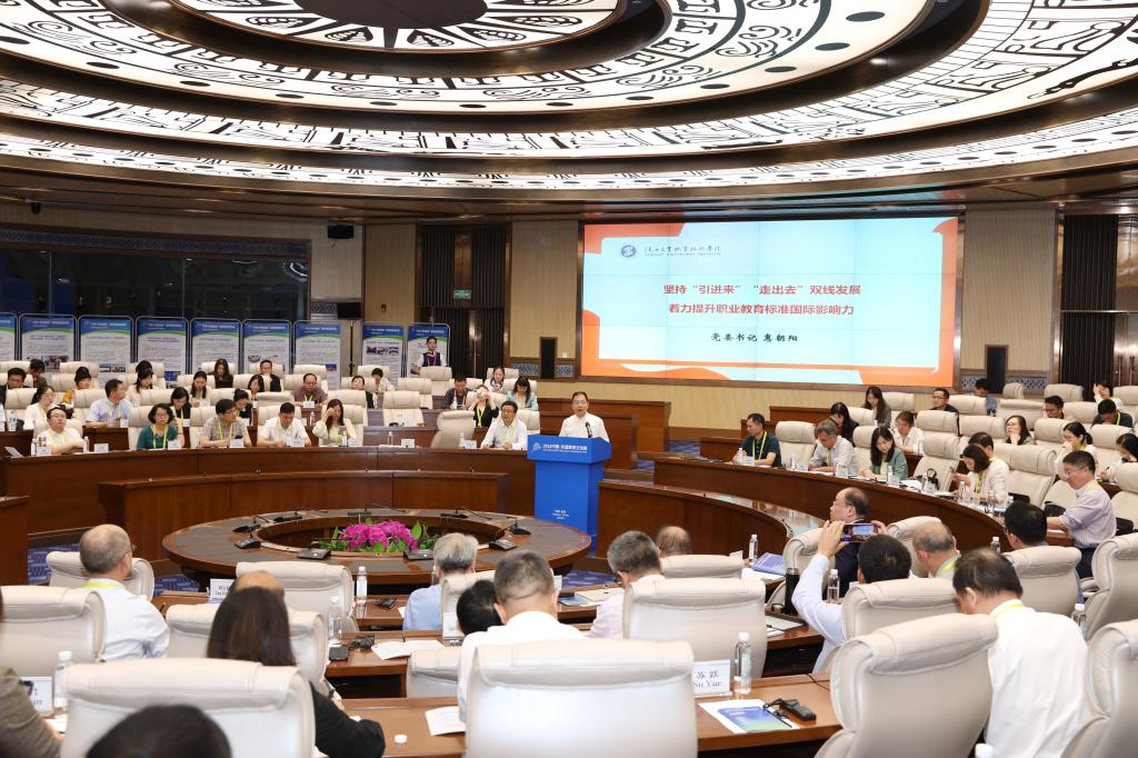 会上,党委书记惠朝阳同志做了《坚持“引进来”“走出去”双线发展,着力提升职业教育标准国际影响力》的主旨报告。报告从开展职业教育标准的创造性转化和创新性发展两个方面,介绍了学校在国际交流合作方面的创新实践、取得的成效。在创造性转化方面,重点介绍了学校在参与世界职教治理、搭建国际课证融通教学资源体系、搭建国际认证工程师培养体系、建设国际标准认证中心、建设国际化师资专家团队等方面的做法和经验。在创新性发展方面,重点介绍了学校在校企联合培养留学生、建设中赞职院和秦工苑职教“出海”项目、开展国际职教师资培训等方面的做法和经验。他表示,创新国际交流与合作机制是新阶段职业教育体系改革“一体、两翼、五重点”的重要组成部分,对助力教育强国战略、“一带一路”人类命运共同体建设具有十分重要的现实意义。学校将认真学习贯彻习近平总书记关于“引进来”和“走出去”两篇大文章的重要论述,贯彻落实好国家关于发展现代职业教育体系的相关政策,坚持教随产出、校企同行,进一步加强与“一带一路”沿线国家和地区的交流合作,更好地服务国家、区域发展战略,努力打造学校对外开放新高地。