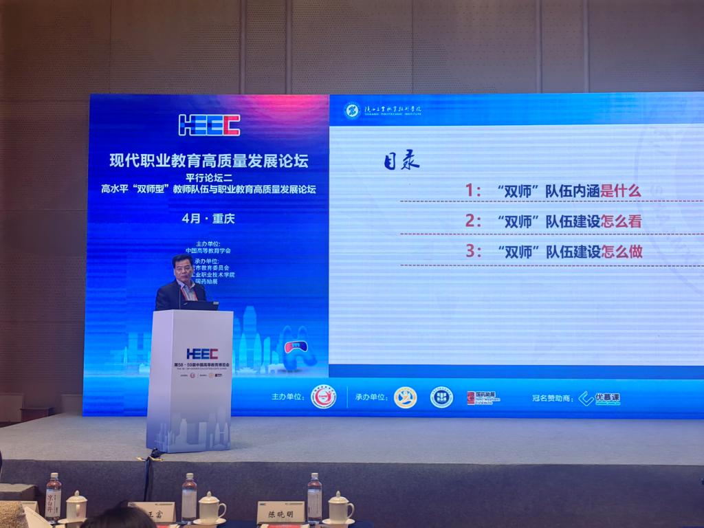 作为第58·59届中国高等教育博览会的主论坛之一,高水平“双师型”教师队伍与职业教育高质量发展论坛在重庆市悦来会议中心欣悦厅B举行。本次论坛以“打造‘双师’新范式 校企协同促发展”为主题,中国高等教育学会副会长、江苏省政协教卫体委员会主任葛道凯,教育部职业教育与成人教育司副司长林宇,教育部教师工作司副司长翁波,重庆市委教育工委委员、市教委副主任李劲渝,机械工业教育发展中心主任、中国机械工业联合会教育培训部主任陈晓明等领导专家出席会议,市内外职业院校领导、企业领导、专家学者、院校教师代表、开云(中国)媒体等3万余人通过线上线下方式参加论坛,共研高水平“双师型”教师队伍建设发展路径。本次论坛由中国高等教育学会主办,重庆工业职业技术学院、国药励展展览有限责任公司等承办。