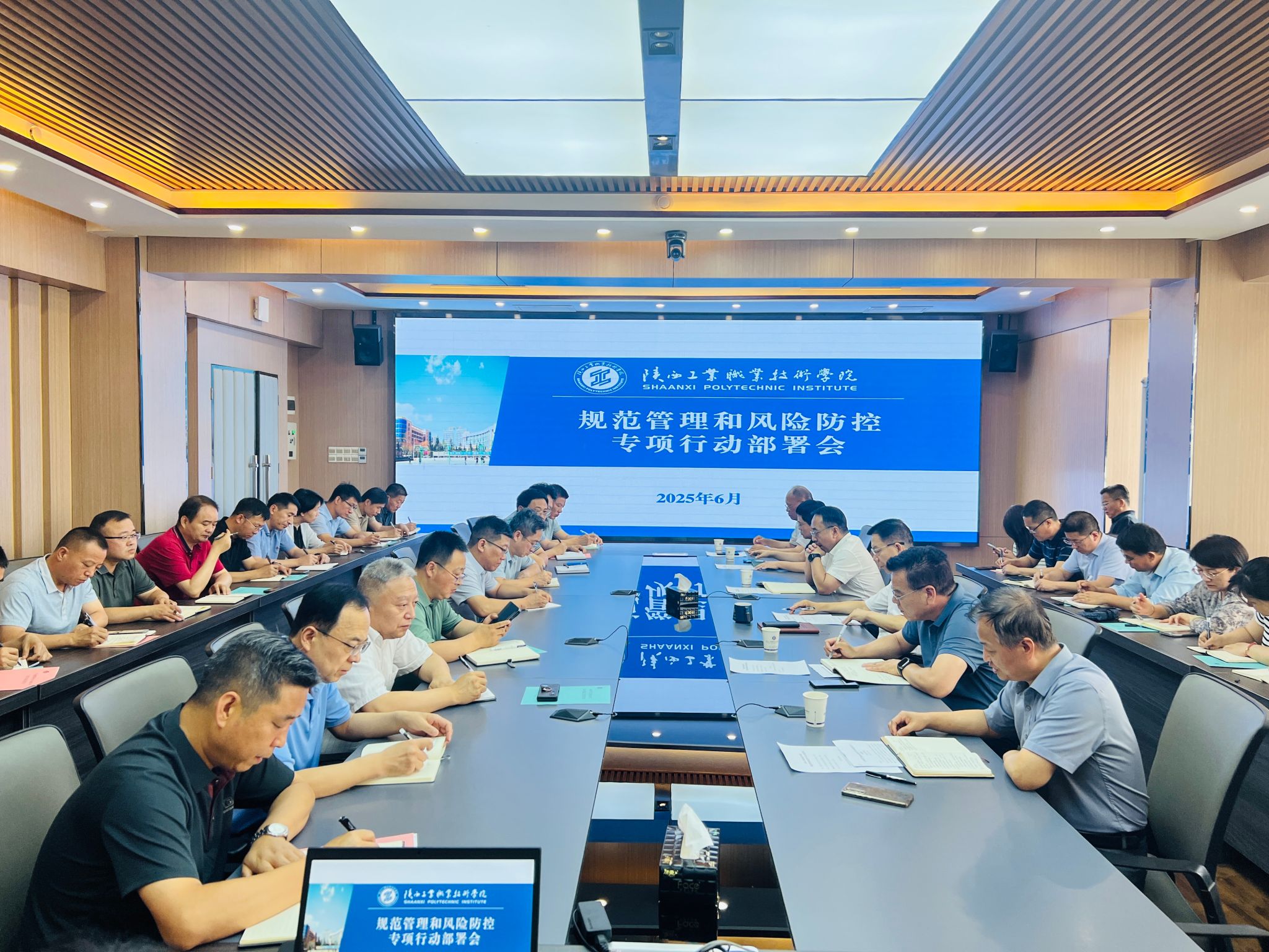 为深入贯彻陕西省教育厅、陕西省人力资源和社会保障厅联合印发的《职业学校规范管理和风险防控专项行动工作方案》(陕教函〔2025〕418号)文件精神,进一步加强学校规范管理和风险防控工作,提升学校治理能力和治理水平,全面筑牢校园安全防线,6月17日下午,我校召开规范管理和风险防控专项行动部署会。校领导班子全体成员出席会议,各处级单位负责人、各二级学院党政负责人参加会议。会议由党委副书记贺天柱主持。