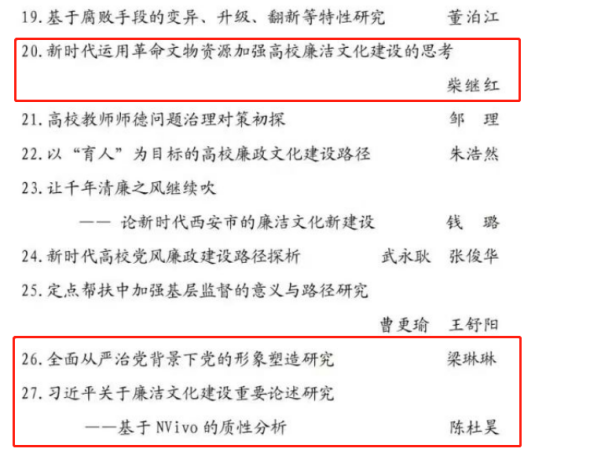 近日,陕西省廉政文化研究会公布了《关于2022年廉政文化建设征文获奖论文的表彰决定》,我校共有21项作品获奖,其中信息工程学院党总支薛昊、机械工程学院党总支张亦乐荣获二等奖,梁琳琳等9位教师荣获三等奖;张木等10位教师荣获优秀奖。学校荣获优秀组织奖。
