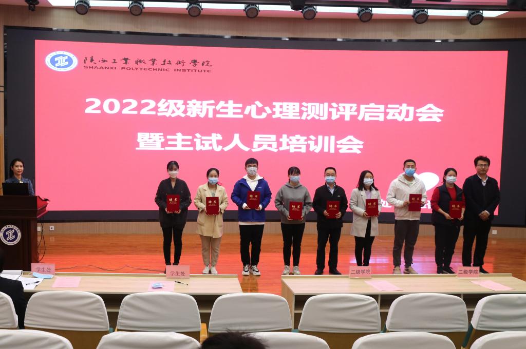 为全面、系统的掌握我院2022级新生的心理健康状况,进一步推进我院大学生心理健康教育工作更好地开展,心理咨询中心分别于10月13、14日下午,在渭城、经开两校区召开了2022级新生心理测评工作启动会暨主试培训会,并进行了线上同步直播。学工部部长、学生处处长郝军,学生处副处长耿丽、学生处心理咨询中心工作人员、各二级学院心理专干、心理委员代表、大学生心理健康协会成员代表参加了本次大会,2022级全体心理委员、宿舍长线上参会。大会由学生处心理咨询中心刘园主持。