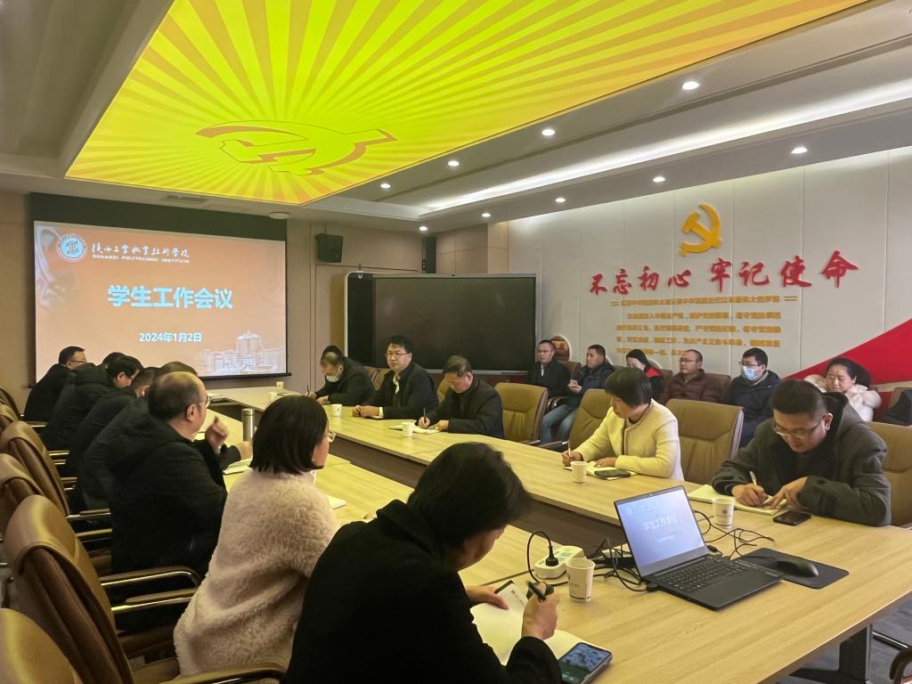 临近学期末,为进一步加强学生日常教育管理工作,1月2日下午,我校召开学生工作会议。党委副书记贺天柱,各二级学院党总支书记、学工办主任以及学生处相关人员参加了会议。