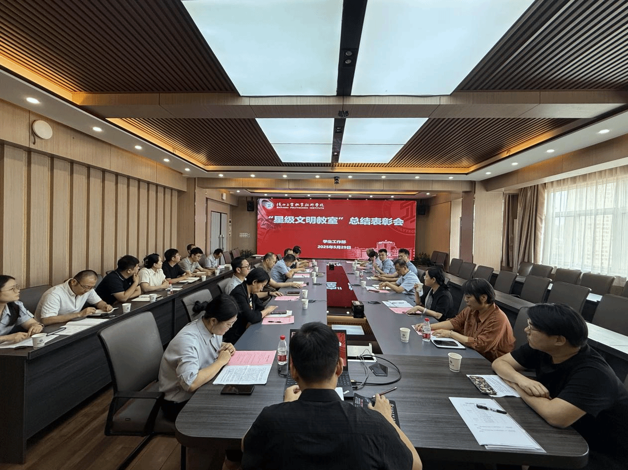 总结会上,学生处处长郝军介绍了本次工作的育人内涵和各二级学院的特色做法。随后,10个二级学院根据具体实施情况,汇报了“星级文明教室”创建工作的特色做法,根据教室参观互评和汇报展示两个方面评议,机械工程学院、化工与纺织服装学院、商贸与流通学院荣获“星级文明教室”创建工作优秀组织奖。