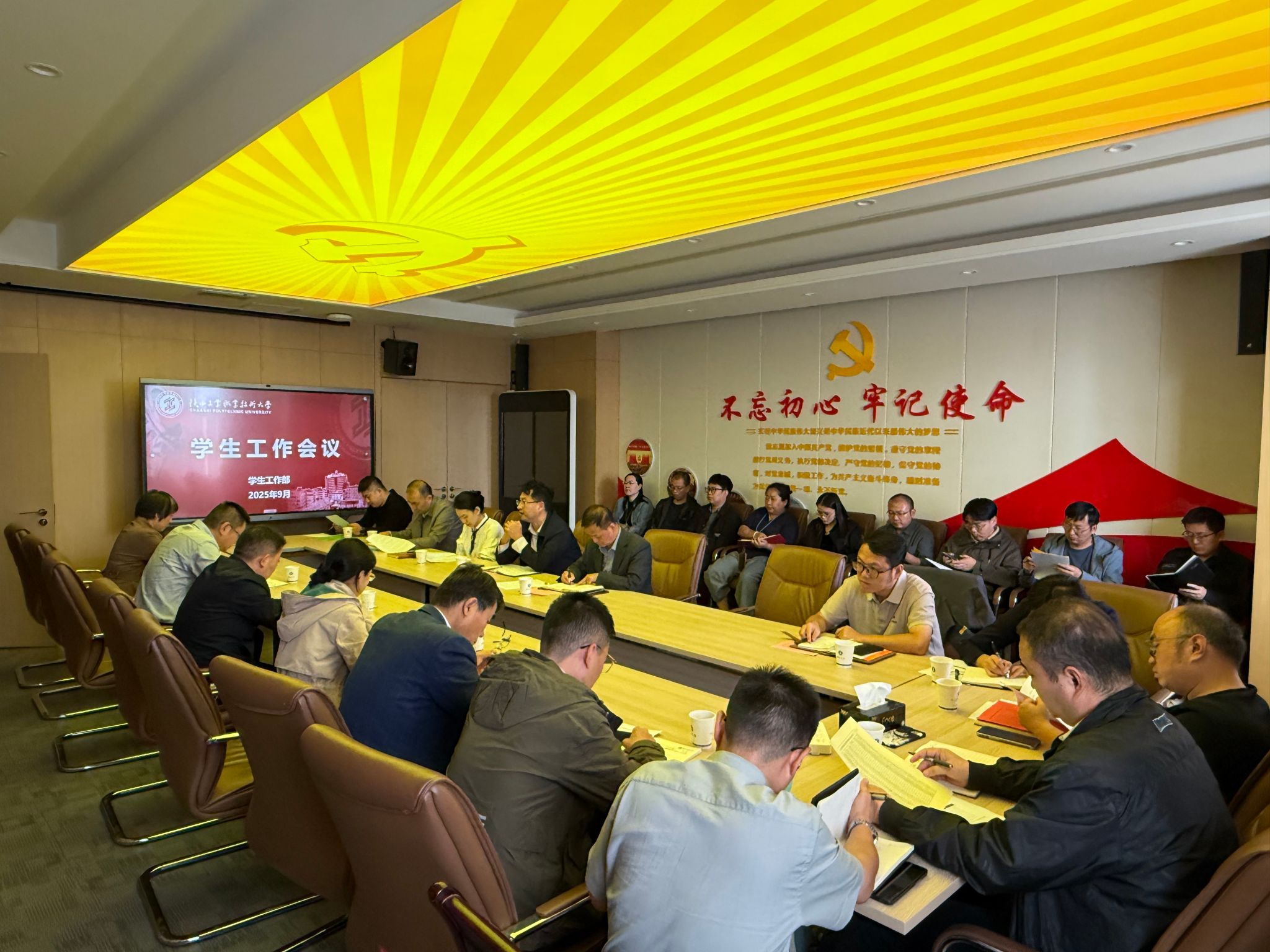 会上,学生处副处长耿丽、刘冽分别就分管的学生工作内容进行了具体安排,涵盖日常学生管理、三风建设、劳动教育、心理健康教育、辅导员队伍建设与培训、资助育人政策落实、“一站式”学生社区建设以及学生党员发展与管理等诸多方面,为新学期各项学生管理工作的有序、高效开展奠定了坚实基础。团委书记薛媚围绕共青团工作要点,从强化青年学生思想政治引领、夯实基层团组织建设、指导学生组织健康发展、深化创新创业教育、丰富“第二课堂”活动体系等方面进行安排。学生工作部(处)长郝军着重强调了四项重点工作:一是要加强对特殊学生群体的关心关爱,要求学工干部深入践行“一线规则”,主动走进学生、倾听学生,将关怀与帮扶落到实处;二是要精心组织并加强新生入学教育,确保各项教育环节按照既定方案有效实施,帮助新生尽快适应校园生活;三是要加快推进“一站式”学生社区综合管理模式建设,提升社区育人实效;四是要进一步规范资助工作流程,加强家庭经济困难学生认定环节的管理,确保资助工作公平、公正、精准。