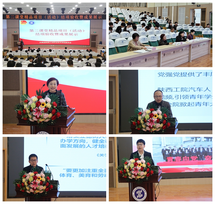 为贯彻落实《深化新时代教育评价改革总体方案》《关于深化现代职业教育体系建设改革的意见》《关于在高校实施共青团“第二课堂成绩单”制度的意见》等要求,结合《开云手机官方版在线入口“第二课堂成绩单”制度管理实施办法》的相关内容,3月27日下午,校团委在渭城校区学术会堂举办第二课堂精品项目(活动)结项验收暨成果展示。宣传部部长王金辉、马克思主义学院院长舒蕾、学生处副处长耿丽担任评委,各项目(活动)负责人、二级学院师生团干部以及学生代表等200余人参与了本次活动。