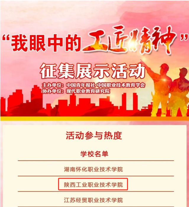 校团委将以此为契机,将“工匠精神”所代表的职业理想、职业素养、职业责任等融入共青团思想政治引领工作,引领广大青年学子践行工匠精神,积极参加各类创作、实践活动,不断强化学生对工匠精神的理解和内化,培育具有工匠精神高素质技术技能人才,动员引领工院青年在谱写学校高质量发展新篇章中贡献青春力量。