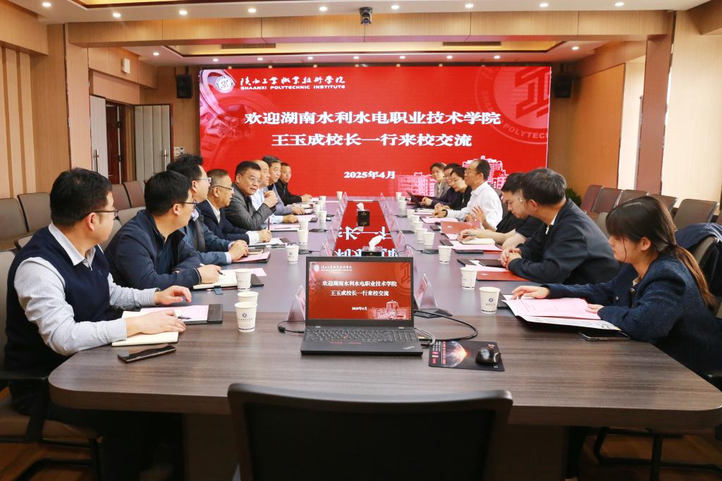 4月8日下午,湖南水利水电职业技术学院校长王玉成率队一行8人莅临我校考察交流。校长刘永亮、副校长梅创社、人事处、双高办、教务处、学生处、就业指导处、发展规划处、基建处、后勤处等部门负责人参加交流座谈,会议由副校长梅创社主持。