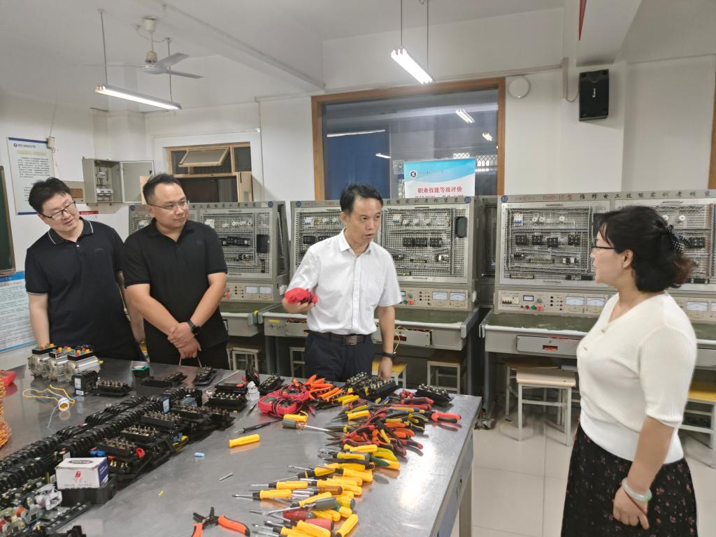 座谈会后,付部长一行参观了先进制造技术训练中心、焊接实训中心、欧姆龙实训室、维修电工实训室和化工技术训练中心等实践实训基地。