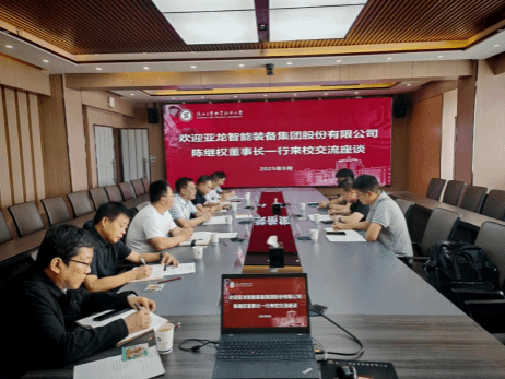 9月12日上午,亚龙智能装备集团股份有限公司董事长陈继权一行3人来校交流座谈。校长刘永亮,教务处、就业指导处(校企合作处)、机械工程学院、电气工程学院、航空工程学院、信息工程学院等部门负责人出席座谈会。座谈会由教务处张磊主持。