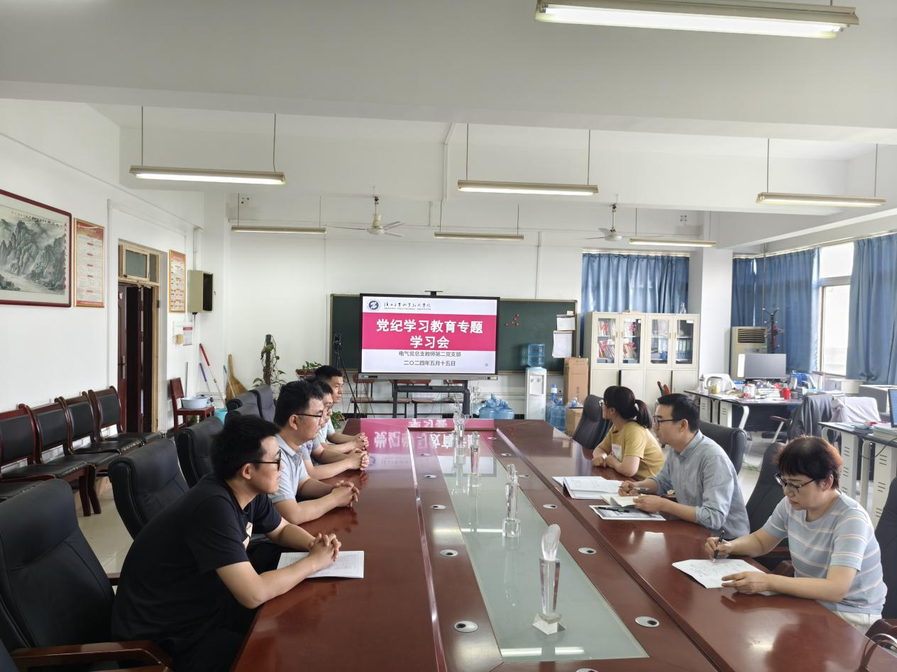 为深入学习贯彻习近平总书记关于党纪学习教育的重要讲话和重要指示精神以及学院部署安排,5月15日下午,电气党总支教师第二党支部在行知楼A502开展党纪学习教育专题学习会,教师第二支部书记张维主持会议,教师第二支部全体党员参加了本次会议。
