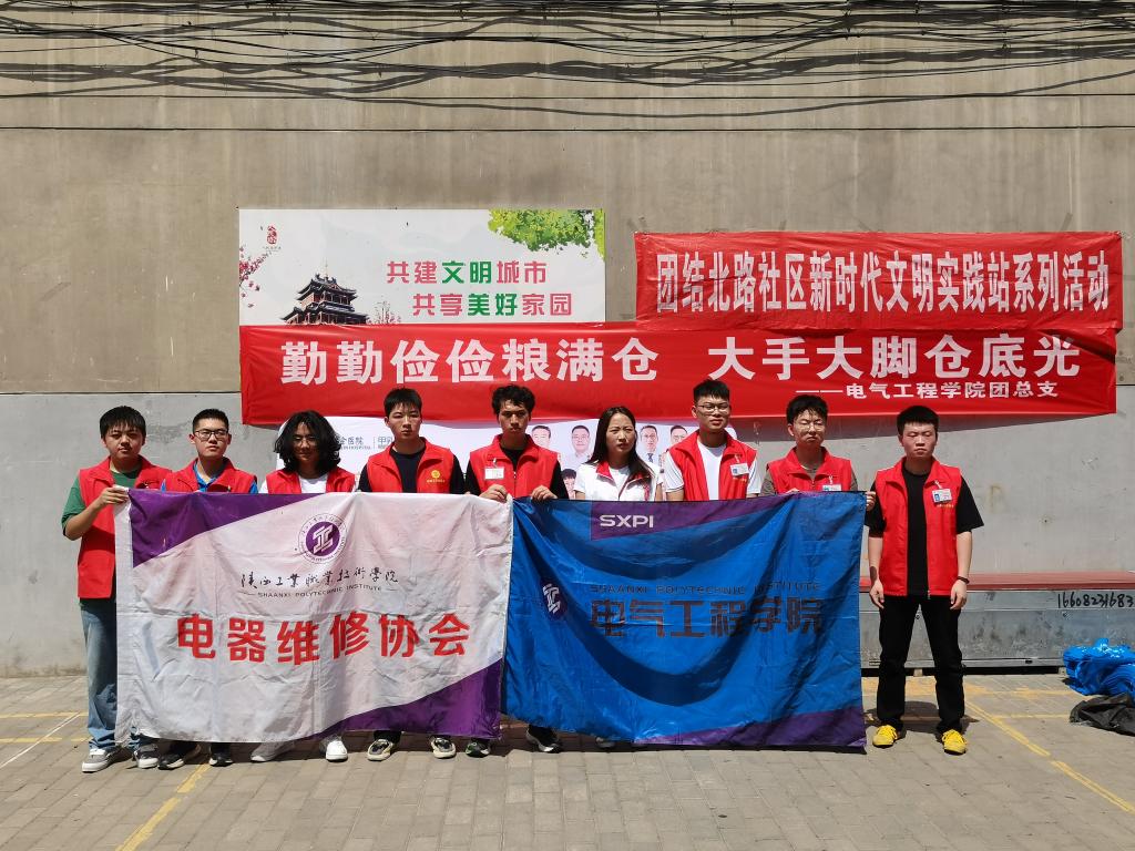 电气学院团总支以《“青春守护中国粮”全国青少年节约粮食行动方案》为指引,于6月13日前往咸阳市团结北路社区开展“青春守护中国粮”节粮宣传及义务维修志愿服务活动。