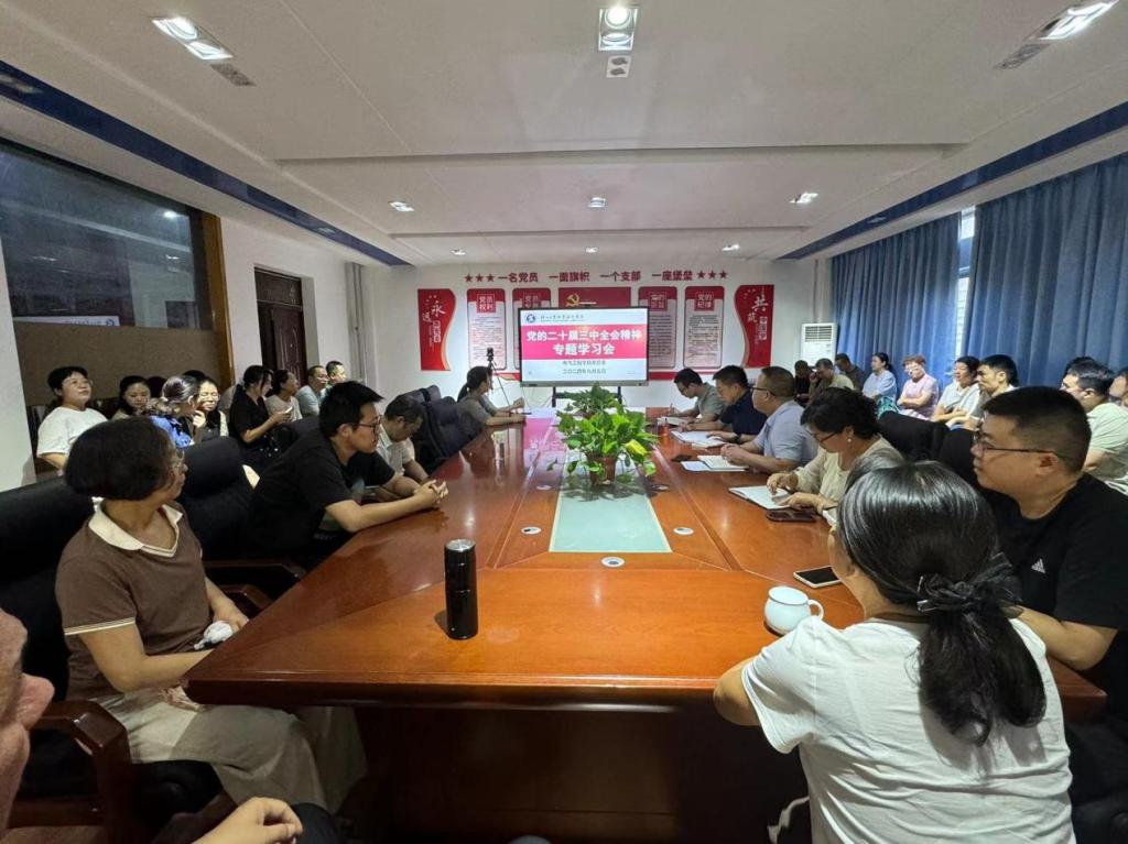 9月5日下午,电气工程学院党总支在行知楼A506召开党的二十届三中全会精神专题学习会,全体教职工参加了会议,会议由党总支书记刘其兵主持。