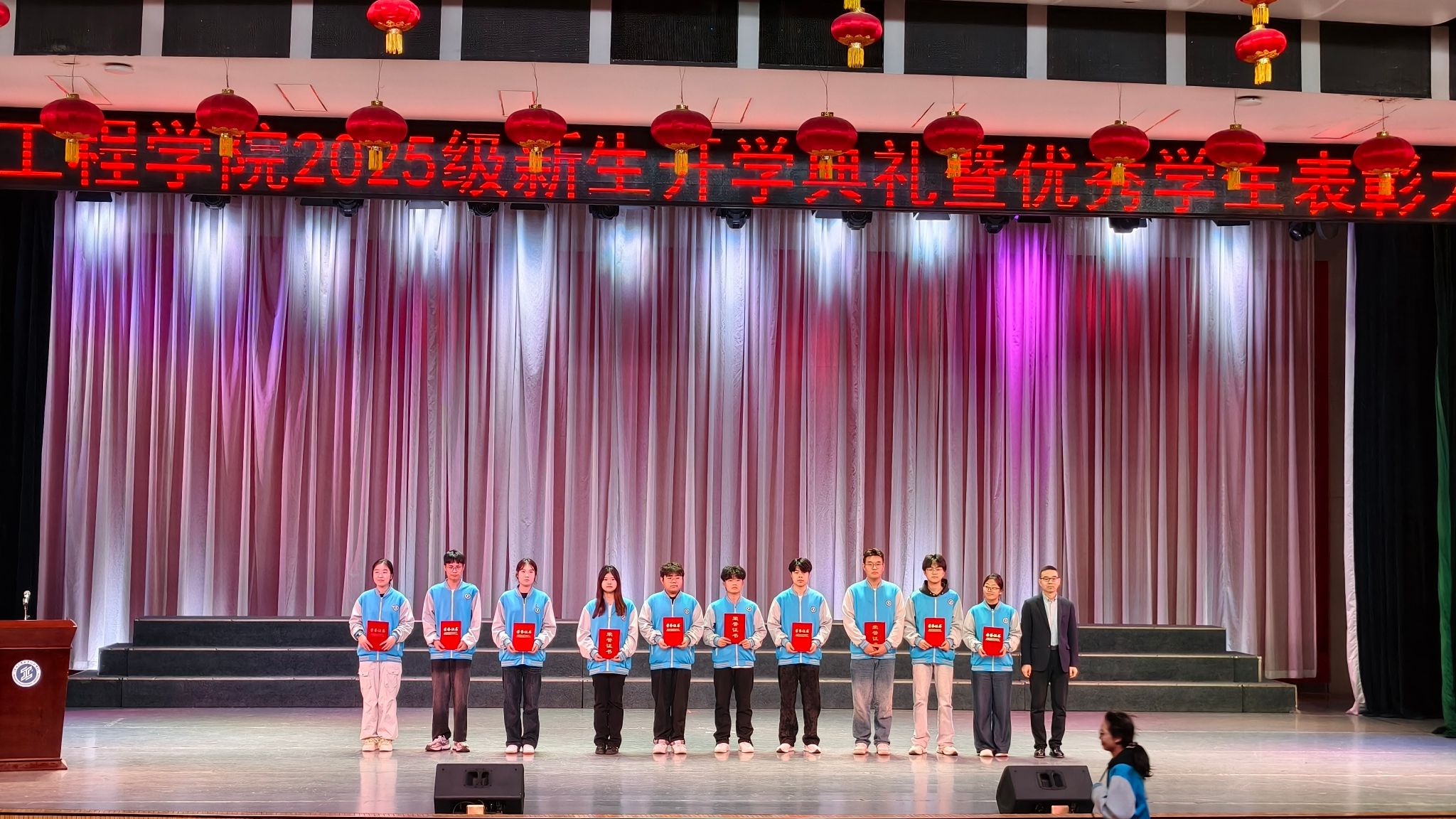 10 月 14 日下午,电气工程学院 2025 级新生开学典礼暨优秀学生表彰大会在明德堂隆重举行。学院党政领导班子成员、学工办全体辅导员、2025 级新生班主任及全体新生共600余人参会,大会由辅导员杨玲玲主持。