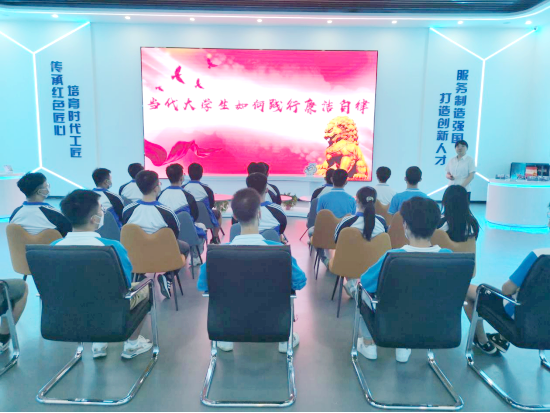 6月14日下午,机械工程学院党总支副书记郭旭华在先进制造技术工程中心为全体学生党员讲授了一堂题为“当代大学生如何践行廉洁自律”的生动党课。