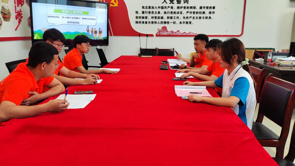 随后,在出征仪式上由机械工程学院指导老师赵昆带领实践队成员学习“三下乡”社会实践活动相关精神,经过讨论查证最终确定本次社会实践主题路线,队员分工明确,提前与各实践地联系,做好应急预案。并邀请荣获过省级优秀团队代表机械工程学院机械制造与设计专业杨梦向实践团成员分享经验心得。