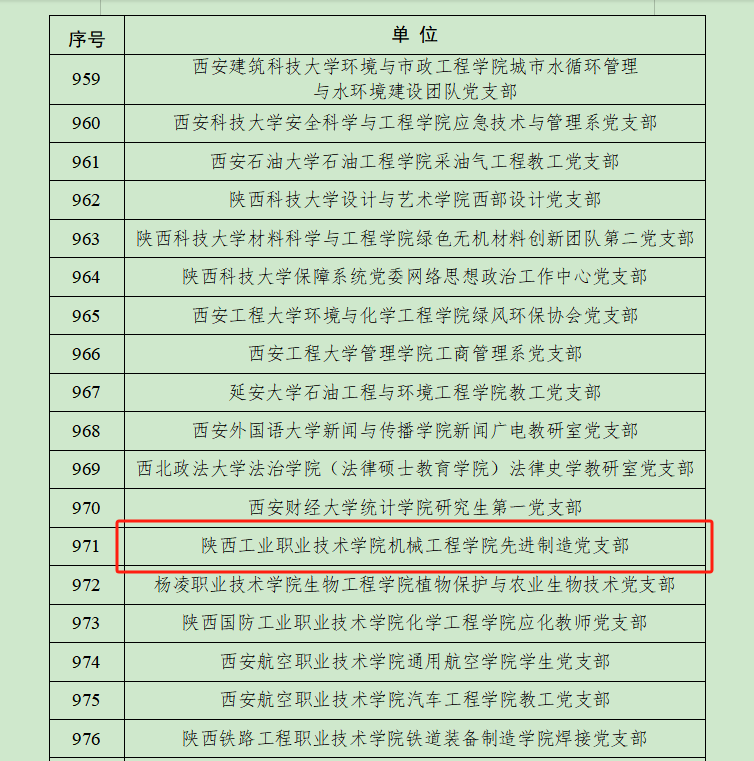 近日,教育部公布第四批全国党建工作示范高校、标杆院系、样板支部遴选结果,我校机械工程学院先进制造党支部(教师第二党支部)入选“全国党建工作样板支部”建设单位。