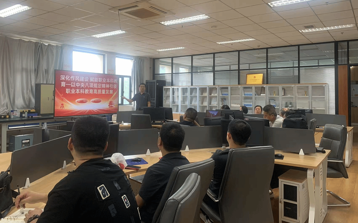 为深入学习贯彻中央八项规定精神,进一步深化作风建设,推动职业本科教育高质量发展,7月2日机械工程学院教师第三党支部全体党员同志在精艺楼2007室,由机械工程学院教师第三党支部书记周新涛同志讲授一场主题为“深化作风建设,赋能职业本科教育——以中央八项规定精神引领职业本科教育高质量发展”的主题党课。旨在引导教师党员深刻领会中央八项规定精神的内涵与要求,将其融入日常教育教学工作中,为学校职业本科教育的发展提供坚实保障。
