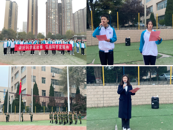 升旗仪式结束后,材料工程学院焊接2201班贺旭东作题为《榜样的故事之邓稼先》国旗下演讲。号召全体同学不要浪费青春、虚度光阴,要树立积极向上的人生态度,让自己努力成为榜样,让生命绽放光彩。随后大一班主任代表郑瑊老师结合本次活动作主题发言:希望广大学生向身边榜样看齐,学习科学家身上坚持不懈、迎难而上、突破自我的优良品质,激励同学们做一个对社会、对国家有用的人。活动最后增材2201班王诗雨、材料2202班嘉兴带来朗诵《强国复兴路,启航新征程》,朗诵声情并茂、铿锵有力,让全体师生深受感染。