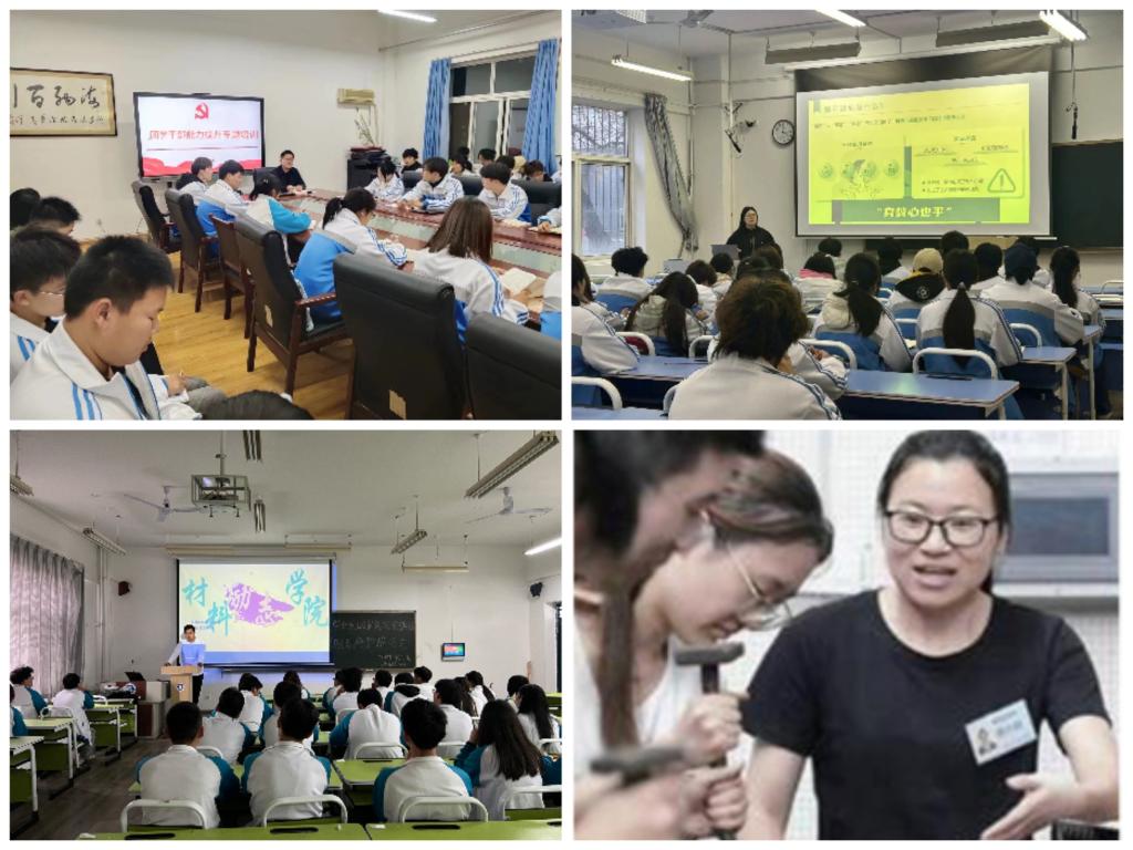 骨干带头,重“引领”。结合团学骨干带头引领学习要求,持续开展团干部“上讲台”活动,学院1名教师团干部,30余名班级团干部开展“上讲台”活动,讲团课。每周周末开展一次团学干部工作例会,进行思想引领,每学期对学院全体学生干部开展线下培训,不断提升团学干部的政治方向与基础技能。10月29日,材料学院团总支书记赵盼盼组织全体团学干部学习了习近平总书记在庆祝中国共青团成立100周年大会上的讲话,会后开展了团支书及团学干部“交流研讨会”,通过团学干部带动身边的团员和青年同学习、共进步。11月17日,材料学院教师团干部胡瑞霞向团员青年作《拒绝躺平 做有为青年》专题报告。为进一步发挥先锋模范带头作用,材料学院团总支还组织国家奖学金获、优秀学生标兵、技能大赛等优秀者向团员和青年做分享。同时加强对往届优秀毕业生的宣传力度,将学院2014届毕业生,现任清华大学实训实践教师邢小颖的事迹广泛宣传给团员和青年,激励他们勇于责任担当、贡献青春力量。
