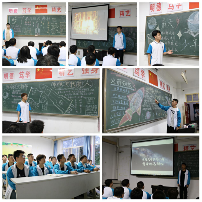 活动中,各班通过观看飞天视频、诗朗诵、航天故事分享等形式,回顾自新中国成立以来几代航天人探索浩瀚宇宙、发展航天事业、建设航天强国、追求航天梦想的奋斗历程,感受我国航天事业以“两弹一星”、载人航天、月球探测为代表的辉煌成就。同学们纷纷表示,中国的航天事业发展是一代代航天人知难而进、坚持不懈、昼夜辛劳的结果,作为新时代青年学子应当学习中国航天精神,不怕困难,持之以恒,在学习中,不负韶华争朝夕,不待扬鞭自奋蹄。