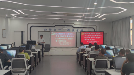 党总支书记刘军旭首先传达了学校“关于开展纪律教育学习宣传月活动的通知”文件精神要求,带领全体教师党员集中学习了《中国共产党纪律处分条例》部分内容,《党委(党组)落实全面从严治党主体责任规定》《中共中央办公厅关于进一步激励广大干部新时代新担当新作为的意见》等文件内容,并对纪律教育学习宣传月党规党纪知识测试等活动进行了说明,要求各支部按要求开展好“严守纪律规矩、加强作风建设”为主题的组织生活会。会上组织观看了《金融反腐正风纪》纪录片,号召全体党员心知敬畏,行存戒惧,知行合一,坚守底线。