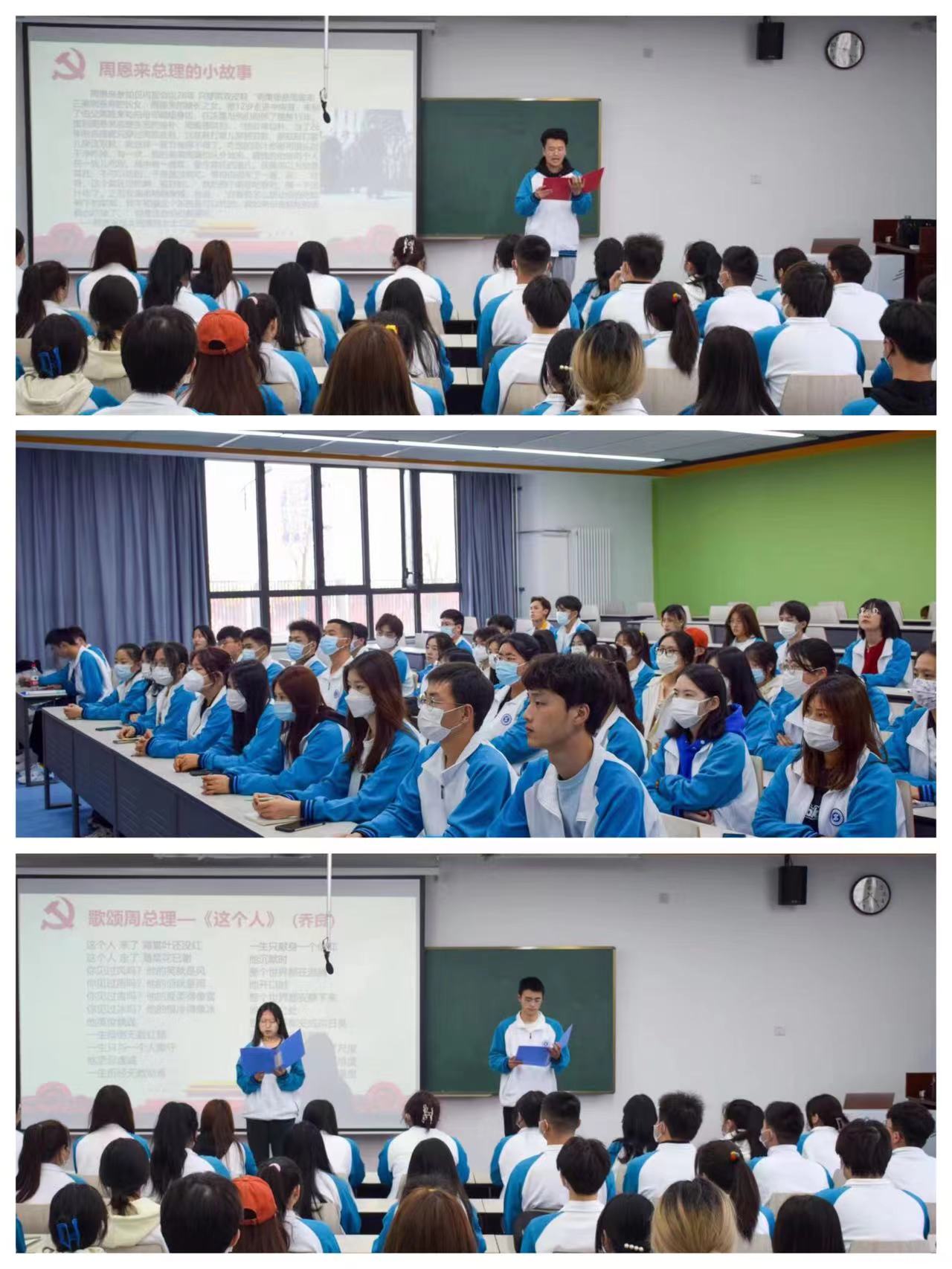 海棠花开,追忆总理。云山苍苍,江水泱泱,先生之风,山高水长。通过周恩来总理的生平简介、故事分享、诗歌朗诵等方式追忆先贤,感悟周总理“为追求真理不懈探索”“为民族解放建立功勋”“为人民幸福鞠躬尽瘁”的精神,使同学们深刻领悟了周恩来总理为中国人民谋幸福、为中华民族谋复兴、为人类进步事业而奋斗的光辉一生。