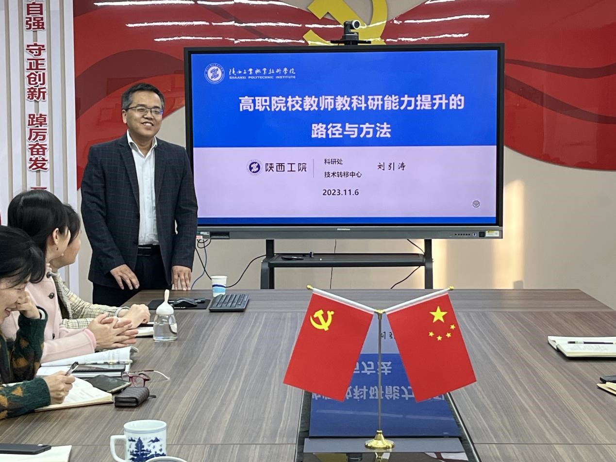 会上,刘引涛处长作了题为《高职院校教师科研能力提升的路径与方法》的专题报告,解读了《开云手机官方版在线入口横向科研项目及经费管理办法》《开云手机官方版在线入口科技成果转化管理实施办法(修订)》《开云手机官方版在线入口知识产权(专利)管理办法》等相关文件,重点对科研管理工作、课题申报注意事项、经费报销制度、科研平台搭建、考核及奖励等相关内容进行了深入解读,进一步加深了全体教职工对相关科研政策的了解。白国政院长随后进行了科研动员,鼓励学院教师,特别是博士、青年教师要积极树立科研意识、参与科研活动,不断提升个人水平与素质,以科研促进教学。