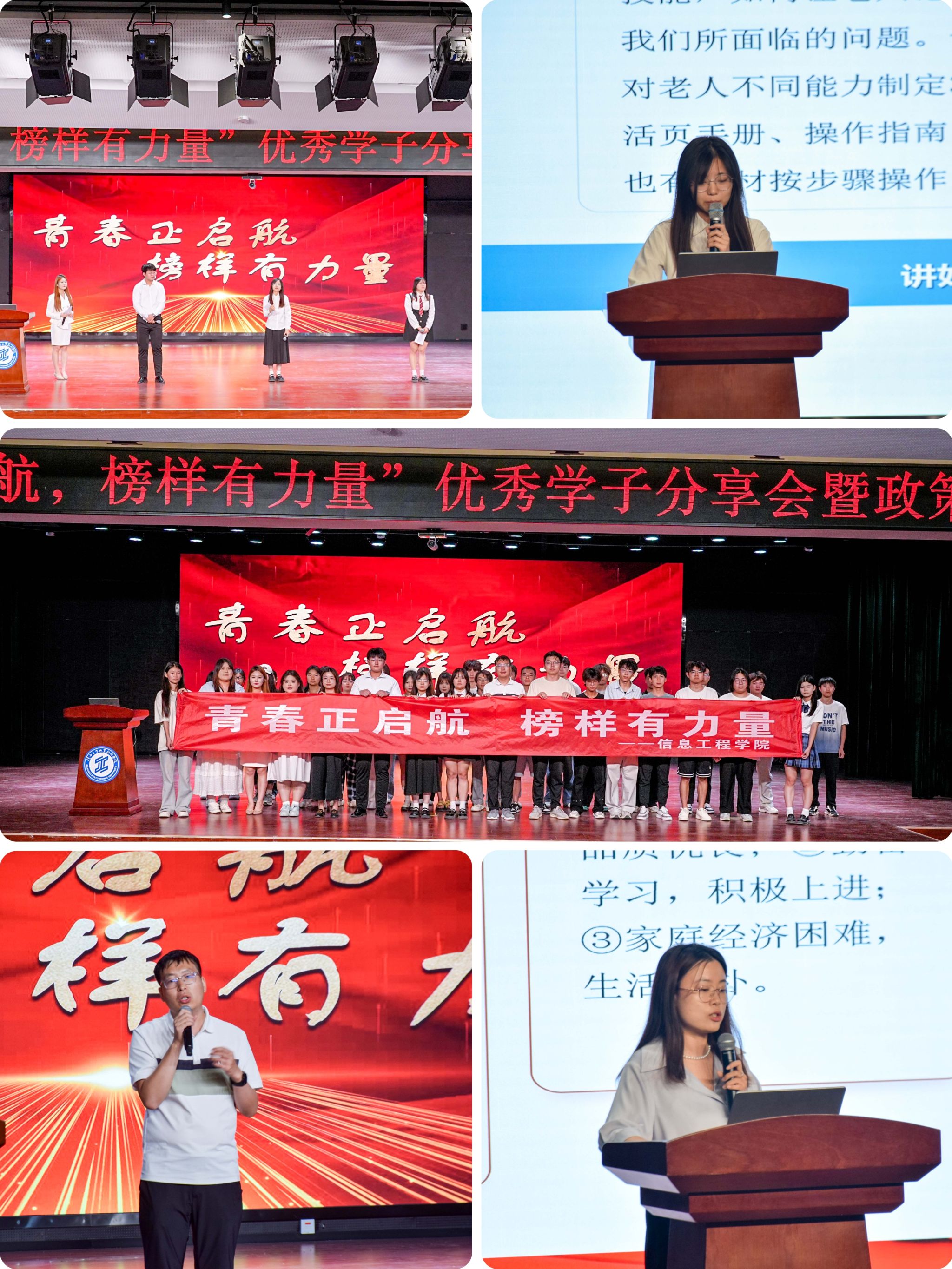 为充分发挥优秀学生的榜样引领作用,帮助同学们更好地了解国家资助政策,信息工程学院学院于6月10日晚在图文报告厅举办了“青春正启航 榜样有力量优秀学生分享会暨政策解读会”。学工办主任、辅导员代表以及2024级学生代表300余人参加。